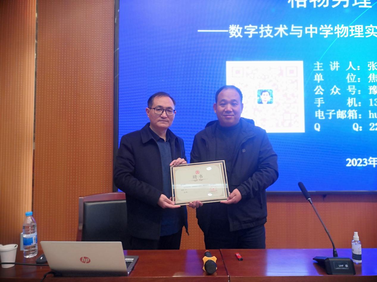会后,张怀华老师就现场师生提出的问题进行交流讨论,参与师生纷纷表示受益匪浅。物理学院副院长秦朝朝向张怀华老师颁发了我校“博约讲堂”讲座教师聘任书。