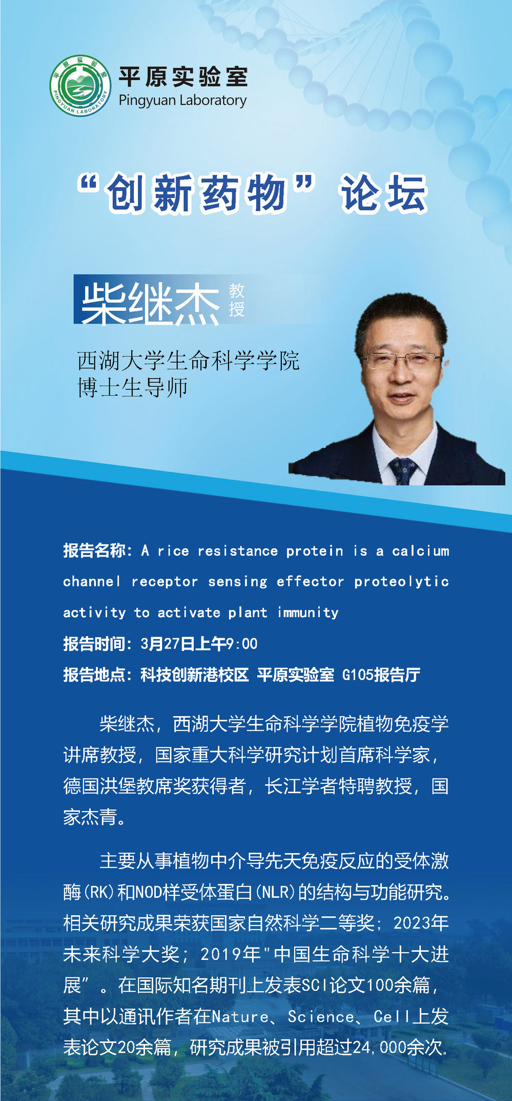 西湖大学生命科学学院柴继杰教授将应邀参加“创新药物”论坛