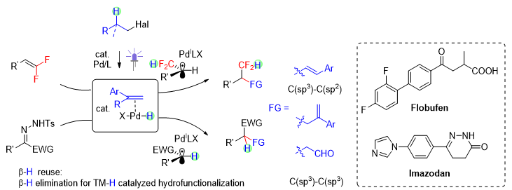 (30). Fen Wu,Kangbao Zhong,† HaoWuLuning ShenDachang Bai,* Junbiao Chang*. β-Hydrogen Elimination to Access a PdH Catalyst for Hydroalkenylation and Hydroalkylation. ACS Catal. 202515, 20284−20293.