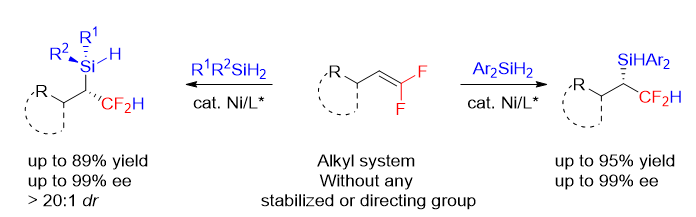 (33). Bai, Dachang.*; Wu, Fen.; Chang, Lingna.;Wang, Manman.; Wu, Hao.; Chang, Junbiao.* Highly Regio- and Enantioselective Hydrosilylation of gem-Difluoroalkenes by Nickel Catalysis. Angew. Chem. Int. Ed.  202261, e202114918.  (Highlight by Synfacts 2022, 18, 0398)