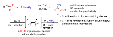 (29). Ming Jin, Yuanyuan Guo, Hao Wu, Mengang Cui, and Dachang Bai*Copper-Catalyzed Regio- and Enantioselective Hydroamination of gem-Difluoroalkenes to Access Chiral Difluoromethyl Amines. Org. Lett. 202527, 5835−5839.