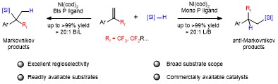 (35). Bai, Dachang.;* Zhong, Kangbao.; Chang, Lingna.; Qiao, Yan.; Wu, Fen.; Xu, Guiqing.; Chang, Junbiao.* Nickel-catalyzed regiodivergent hydrosilylation of α-(fluoroalkyl)styrenes without defluorination. Nat. Commun202415, 6360.