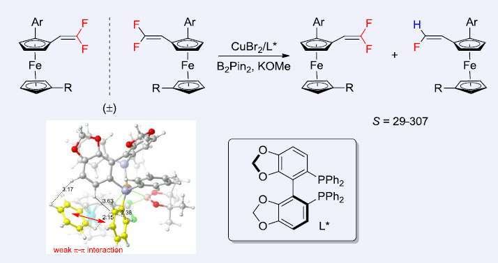 (27). Shuchen Lei, Hao Wu,* Dachang Bai*Enantioselective Synthesis of Planar Chiral Fluoroalkenes via Kinetic Resolution of gem-Difluorovinylferrocenes.Chin. J. Chem. 202543, 2943−2950.