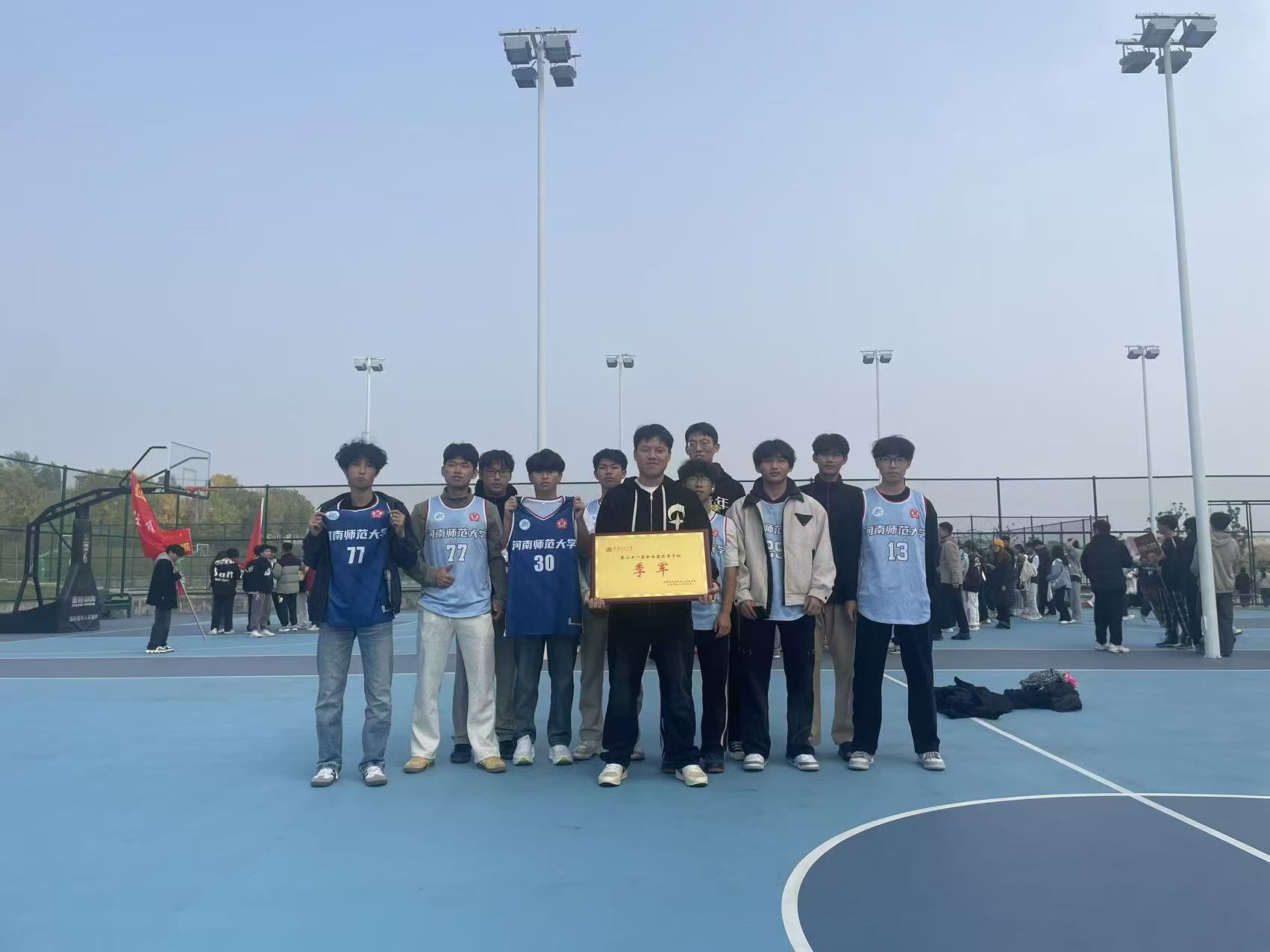 10月31号,在欢呼声与掌声中,校篮球联赛颁奖仪式在东区篮球场圆满落幕。我院男篮凭借顽强拼搏的斗志与默契协作的团队精神,一路过关斩将,最终斩获联赛第三名的优异成绩,为学院赢得了荣誉与喝彩。