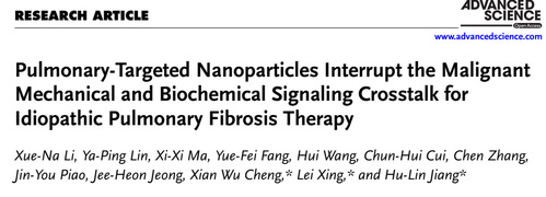 近日,Xian Wu Cheng, Lei Xing, and Hu-Lin Jiang 团队在 Advanced Science 发表题为 “Pulmonary-Targeted Nanoparticles Interrupt the Malignant Mechanical and Biochemical Signaling Crosstalk for Idiopathic Pulmonary Fibrosis Therapy” 的研究论文。研究团队开发了一种吸入性肺靶向纳米颗粒(VB-RT NPs),这种纳米颗粒通过共载药物并双重修饰,可同时阻断 IPF 中的机械和生化信号恶性串扰,在体外和体内均展现出显著抗纤维化效果,为 IPF 治疗提供了创新策略。