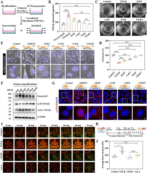 3、VB-RT NPs 体外阻断成纤维细胞机械-生化信号交互。