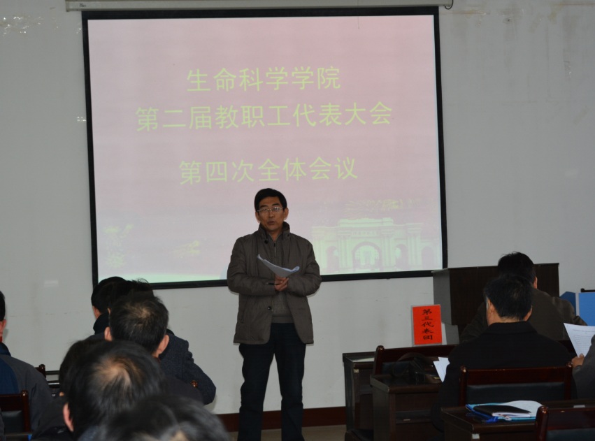 12月2日下午2:30,生命科学学院第二届教代会第四次会议在学院二楼会议室隆重召开。出席会议的有学院党政领导、教职工代表和特邀代表共计45人,会议由李建军主席主持,本次教代会主要议程是审议《生命科学学院关于教职工奖励分配工作的实施意见》(草案)等规章制度。
