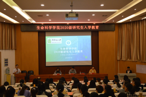 9月27日上午,生命科学学院在生物报告厅举办2020级研究生入学教育暨研究生开学第一课。学院院长余国营,研究生工作秘书王瑞飞,研究生辅导员王伟燕,教务负责人史晓晓,全体2020级研究生共同参加会议。会议由研究生工作秘书王瑞飞主持。