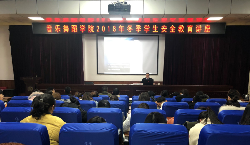 12月16日晚,音乐舞蹈学院邀请学生资助服务中心主任、党委学工部副部长、学生处副处长赵红杰,在党校教室开展冬季学生安全教育讲座。学院相关负责人、专兼职辅导员和300余名学生参加。