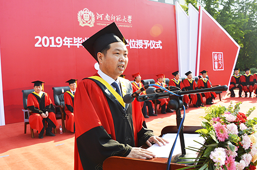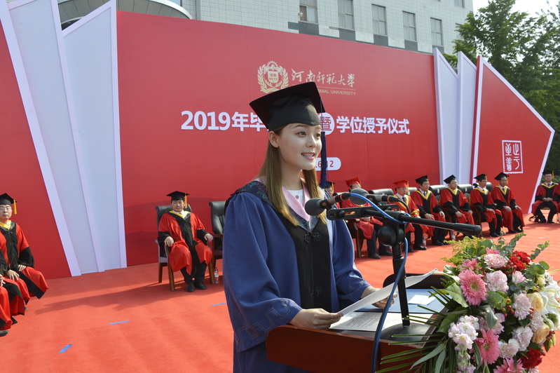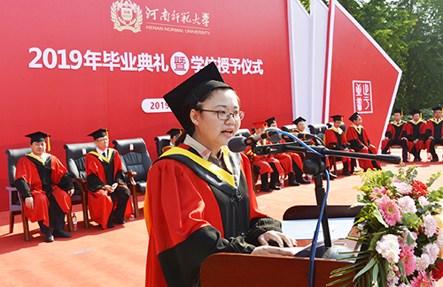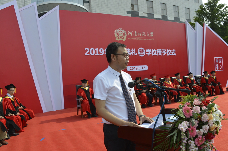 一日师大人,终生师大情。家长代表、生命科学学院毕业生张哲母亲杨敬艳亲切嘱咐毕业生,希望孩子们不忘师大、不忘恩师、不忘奋斗。校友代表、历史文化学院96届毕业生、河南瑞源教育集团董事长牛新哲与大家分享成长感慨,希望大家牢记母校‘尚诚朴、勤学问’的学风,不忘初心、立足平凡、终身学习。