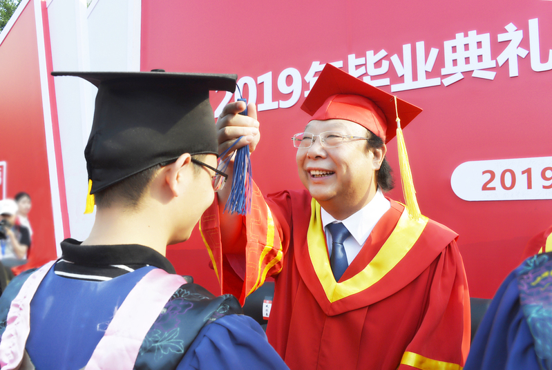 “学高为师,德高为范,巍巍学府,人才集翔……”当熟悉的旋律再次响起,同学们已然热泪盈眶,歌声中激荡着2019届毕业生的青春年华,也饱含着“厚德博学 止于至善”坚定信念。伴随着校歌旋律的结束,2019届学生毕业典礼画上完美的句号。