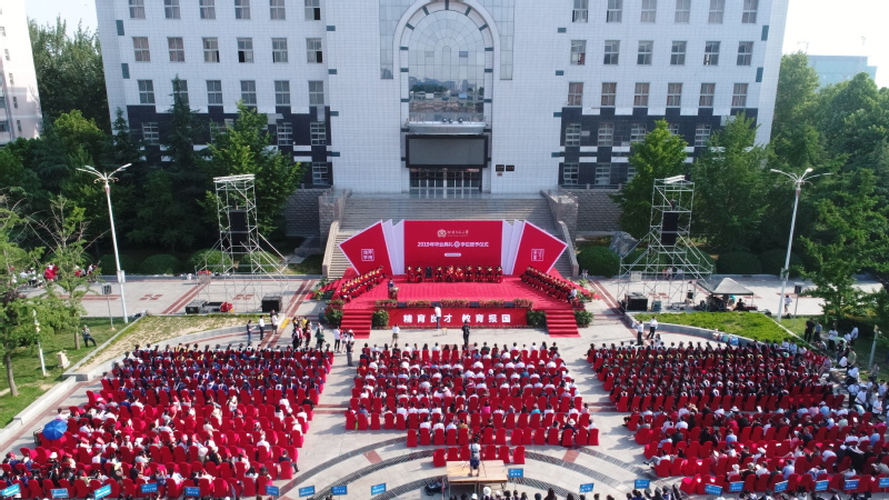 6月12日上午,我校2019届学生毕业典礼暨学位授予仪式在图书馆前广场隆重举行。校领导赵国祥、常俊标、臧振春、陈广文、李学志、李雪山、马治军、张尚字、岳杰勇、刘玉芳出席典礼。各学院书记(院长)、副书记、教师代表、毕业班辅导员、校友代表、毕业生家长代表及2019届全体毕业生8900余人参加了典礼。典礼由副校长李学志主持。