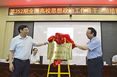 开班仪式上,朱自锋、赵国祥共同为教育部高校思想政治工作队伍培训研修中心(河南师范大学)揭牌,并预祝此次培训圆满成功。