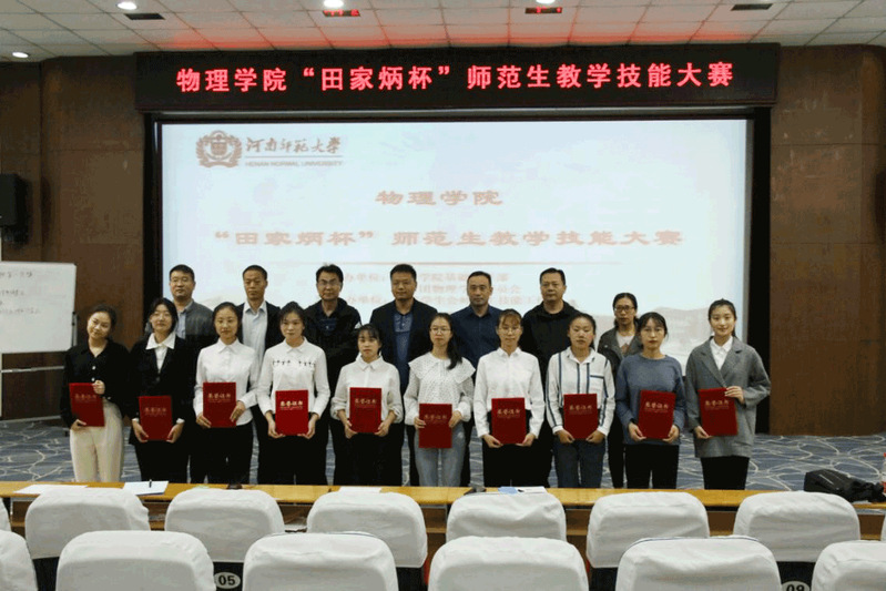 为更好搭建“以赛促学、以赛促教、以赛促训”的师范生教学技能学习交流平台,有效提高物理学院师范生教学技能整体水平,努力培养造就更多“有理想信念、有道德情操、有扎实学识、有仁爱之心”的基础教育教师人才。9月27日下午,由物理学院团委共同主办,学院学生会承办的“田家炳杯”师范生教学技能大赛在物理北楼三楼报告厅举行。学校研究生工作部副部长、研究生院副院长马春旺,学院物理学科教育研究所所长侯新杰,河南师范大学附属中学高级教师郭卫强,物理学科教育研究所陈运保、杜爱慧,基础教学部张计才,团委书记王丹云等七位老师参加本次活动并担任评委。学院物理学专业师范生360多人观摩了本次比赛。