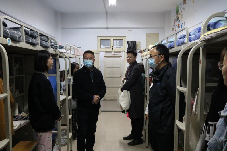 情系新生勤教导,深入宿舍暖人心。2021年10月11日晚,商学院党政领导、教师团队与年级辅导员分批次深入宿舍走访慰问2021级新生,关心学生入学情况,了解学生生活状态,为学生发放防疫物资。