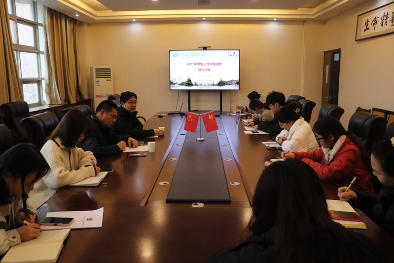 2022年1月4日,生命科学学院于生物西楼212开展2021年度学生工作总结述职及培训会,学院负责人、全体专兼职辅导员参加会议。会议由学院党委副书记朱国超主持。