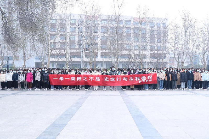 国旗下,教育学部学子纷纷在条幅上签字承诺,将牢记勤俭节约美德,践行青年使命与担当。