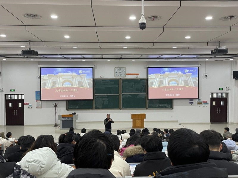 鲁鹏飞首先介绍计算机与信息工程学院往届本科毕业生的毕业去向,分析了计算机相关专业的就业现状及其潜在问题,并进一步剖析这些毕业生五年后的职业发展路径。他从就业观念的影响因素、就业市场的趋势分析、政策扶持与运用等方面详细讲解了国家及学校为促进大学生就业所出台的一系列政策措施,并回答了同学们关于就业的相关问题。他鼓励同学们要结合专业特色,制定职业规划,敢于走出舒适区,要具备积极求职的态度和韧性,树立正确的就业观念,认清形势,把握政策,积极就业。