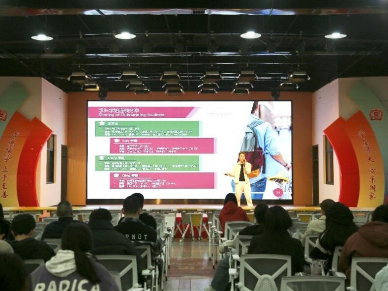 会议伊始,主讲人郑煜宇深入剖析当前就业趋势与人才需求结构,系统论证留学经历在学历进阶及职业发展中的价值。他分享各主流国家留学、国际硕士项目、中外合作办学的教育形式,从时间规划轴、能力提升维、资源匹配度三个层面构建个性化留学方案模型,为不同学业背景的学生提供精准导航。主讲人着重指出,境外留学既需要学生夯实学术根基,通过优化学业成绩、参与科研项目等途径形成具有竞争力的学术履历,构建可量化竞争优势;又需要学生掌握以个人品牌叙事为核心的写作素养,展现个人独特能力。随后,会议连线留学生代表分享自身留学经历。他们聚焦留学规划、跨文化适应及就业规划等方面,为参会学生提供兼具学术考量与职业发展的实践参考。同时,活动设立“一对一公益咨询”环节,为学院学子提供包含院校匹配、留学程序、留学费用等在内的全流程公益咨询服务。