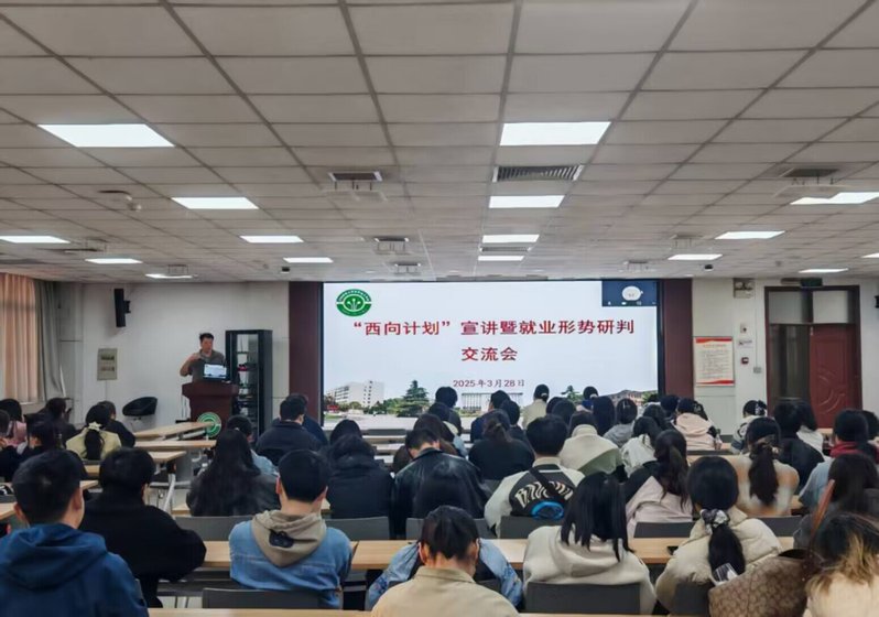 为引导学生响应西部建设号召,明晰就业形势,3月28日下午,化学化工学院在化北北楼五楼会议室举行“西向计划”宣讲暨就业形势研判交流会。2022级研究生辅导员曹锟、14届校友代表岳越、2022级全体研究生参与本次会议。