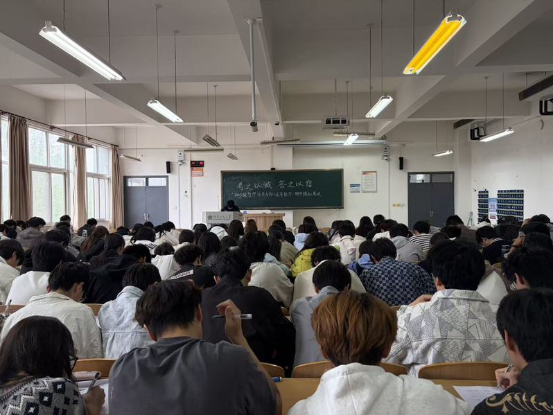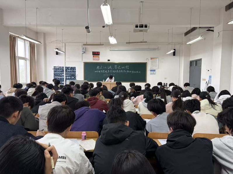 为了配合学校学风建设、摸清阶段性教学效果,同时帮同学们树立诚信意识和严谨的学习态度,4月21日软件学院2025级智慧政务方向在向真楼组织开展了以“考之以诚 答之以信”为主题的《高等数学》期中模拟考试。