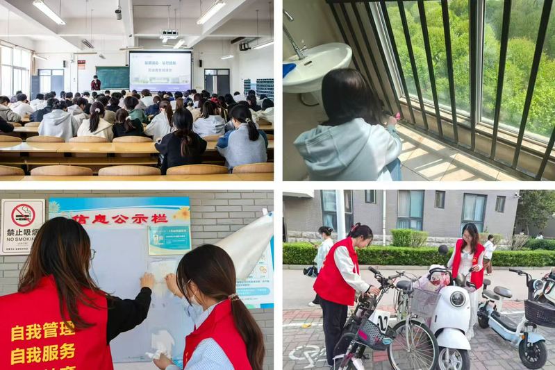 活动以“三个一”行动串联起劳动教育的生动场景:在一次“社区焕新”实践中,“红色指针”党员先锋队成员带领同学们分组穿梭于宿舍楼道与公共区域,手持清洁工具深度清扫,将杂乱的共享单车排列整齐,用汗水擦亮社区环境;一次“最美宿舍”评比里,从洗手池的深度清洁到绿植摆件的创意搭配,同学们在方寸空间里尽显劳动智慧,让宿舍成为承载“小文明”的温馨港湾;一堂“劳动榜样”微党课上,《大国工匠》的镜头定格着精益求精的匠心,优秀劳动者的故事传递着平凡岗位的坚守,让大家在视听浸润中读懂“平凡铸就非凡”的精神内核。“以前总觉得劳动是‘体力活’,现在才发现它藏着成长的密码。”2024级学生马露露一边整理着宿舍书桌一边感慨。视频学习后,大家自发制作“劳动心愿卡”,“学会独立生活”“尊重每一份付出”的字迹里,藏着劳动精神内化于心的成长印记。