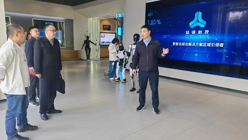 在河南众诚科技有限公司,企业负责人分享了公司身智能机器人数据应用、场景模拟以及康养陪伴机器人等领域的布局与思考。陈艳浩副院长介绍了学院积极推动传统专业向智能化转型的整体情况以及学生在人工智能与机器人竞赛中取得奖项成绩。双方重点探讨了以具身机器人为载体的深度合作模式,包括实训基地建设、数据采集与训练、师资共享、学生实习与就业等环节。