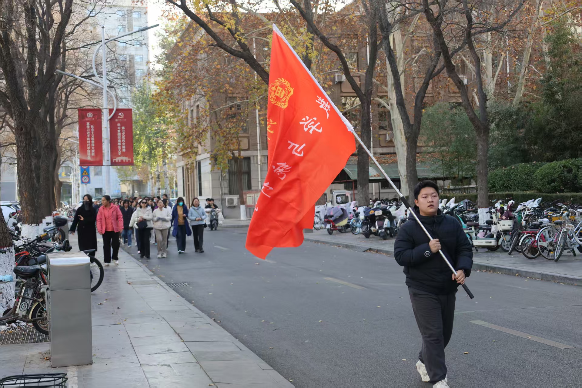 沐浴着初冬的暖阳,全院教职工在数学楼前整队出发,精神抖擞,热情高涨。活动路线途经外国语学院、启智楼、勤政楼、致远楼、万人餐厅,最终返回数学院,形成了一条环绕校园核心区的活力环线。行进途中,教师们或畅谈工作与生活的趣事,或欣赏校园的初冬景致,或交流锻炼心得,欢声笑语洒满全程。整齐的队伍与昂扬的姿态,构成了校园中一道亮丽的流动风景。