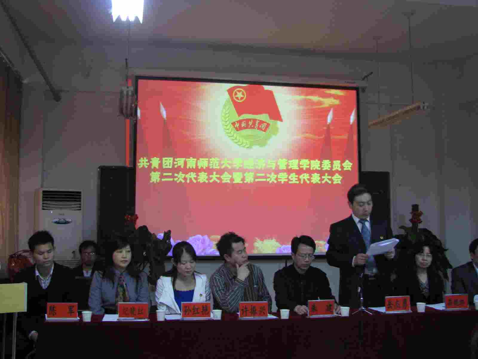 4月24日15:00,共青团河南师范大学经济与管理学院委员会第二次代表大会暨第二次学生代表大会在经济与管理学院学术报告厅隆重召开,出席大会的领导老师有校团委书记岳杰勇、校团委副书记许振兴、白鑫刚、孙红艳,学院党委书记朱建、党委副书记李杰、院长苏晓红、副院长纪晓红、院团委书记王令耀。此外,学院各年级辅导员老师作为列席代表出席了会议。经选举审议的47位团员代表和53位学生代表参加会议并进行选举。会议由院第十届学生会副主席闫锐主持。