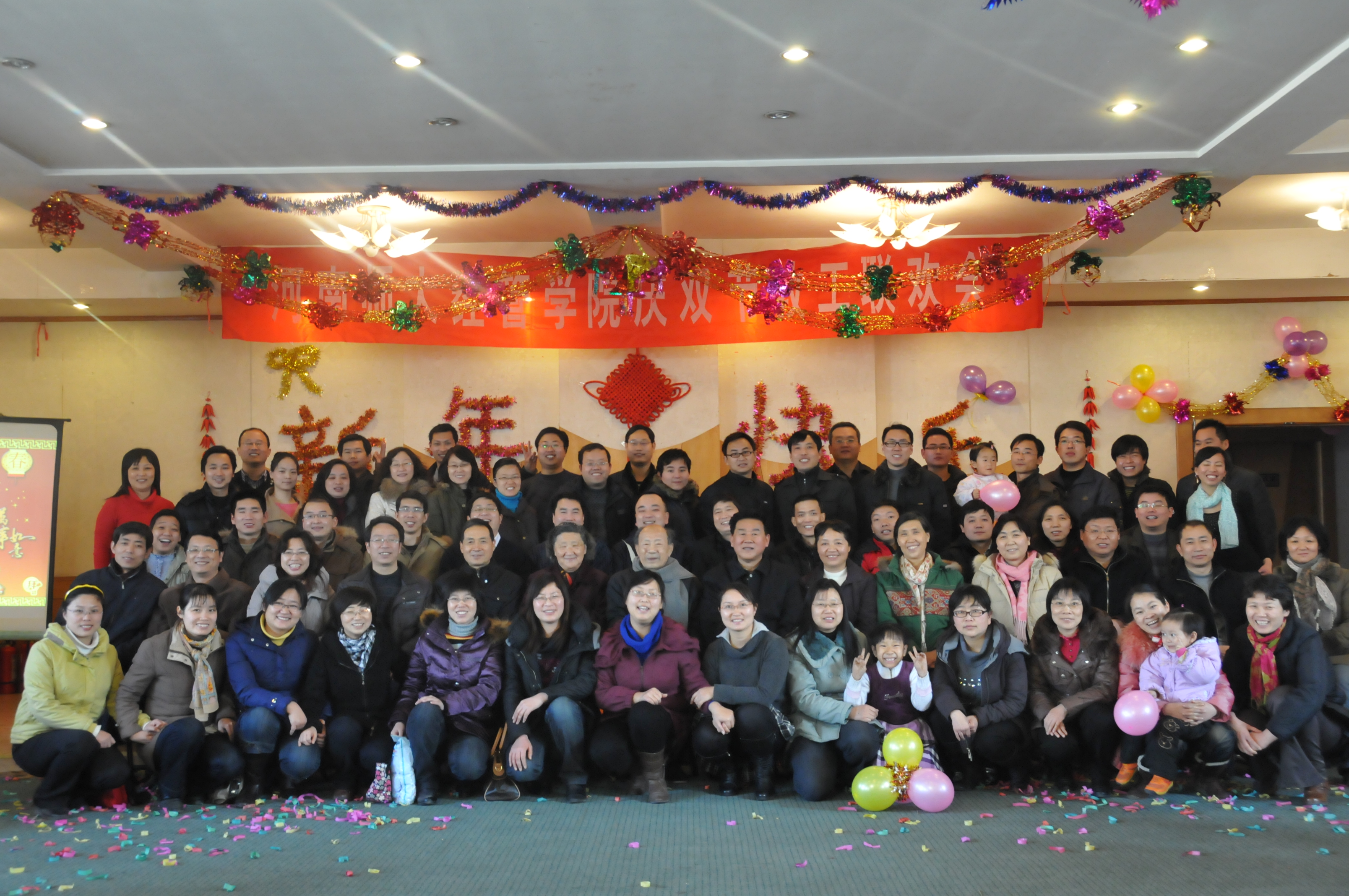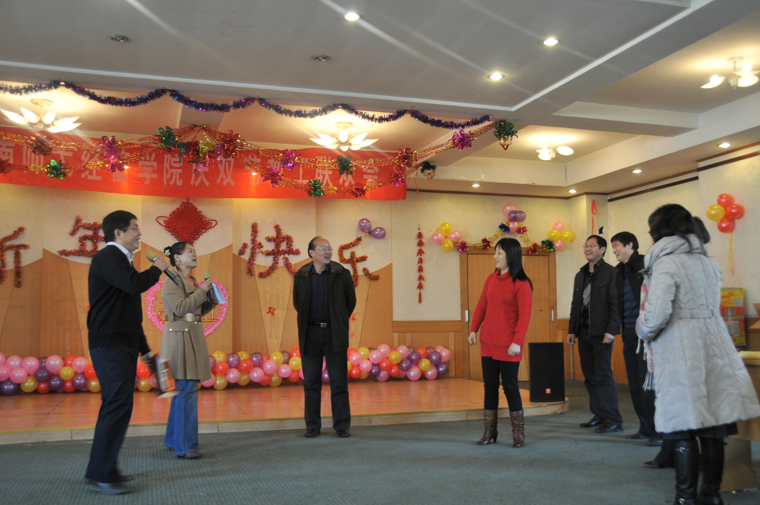 2011年1月1日上午9点,由我院工会主办的2011年教工元旦联欢会在沁园二楼报告厅隆重举行。经济与管理学院全体教职工、曾经在我院学习和工作过的谢华、王霞、任太增、李浩等我校教师代表、离退休教师余德仁、程建华、段云平等七十余人参加了本次联欢会。