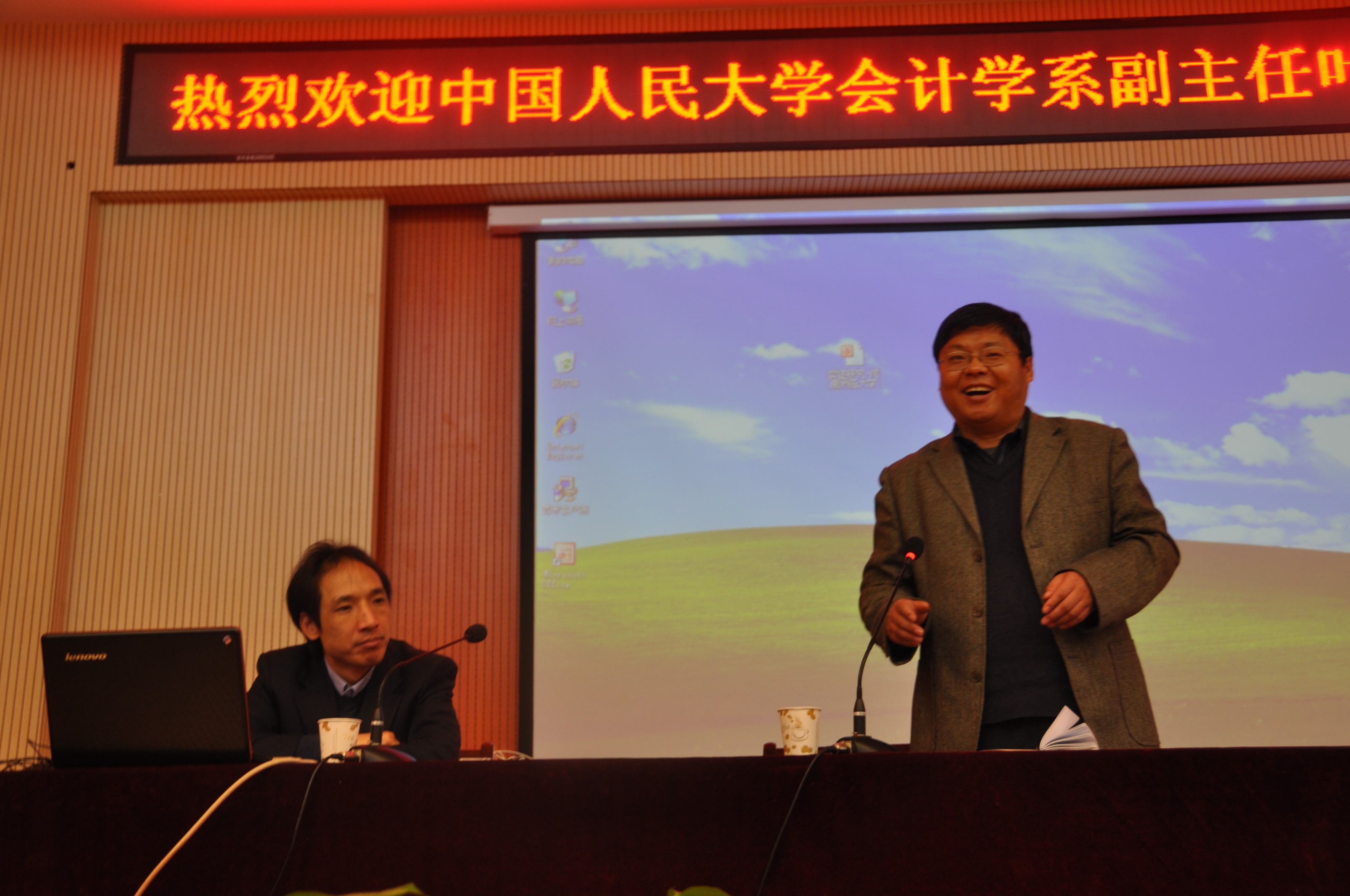 3月30日上午八点,在我校东区思想政治课理论教学平台,第三期财政部会计领军后备人才入选者、北京大学光华管理学院博士、美国北卡罗来纳大学博士后、中国人民大学会计学系副主任叶康涛副教授应邀来我校讲学,作了一场题为《中国会计与公司财务的研究质量分析》的学术报告。经济与管理学院党政领导、骨干教师、研究生、本科生300余人参加了报告会。报告会由经济与管理学院院长任太增教授主持。