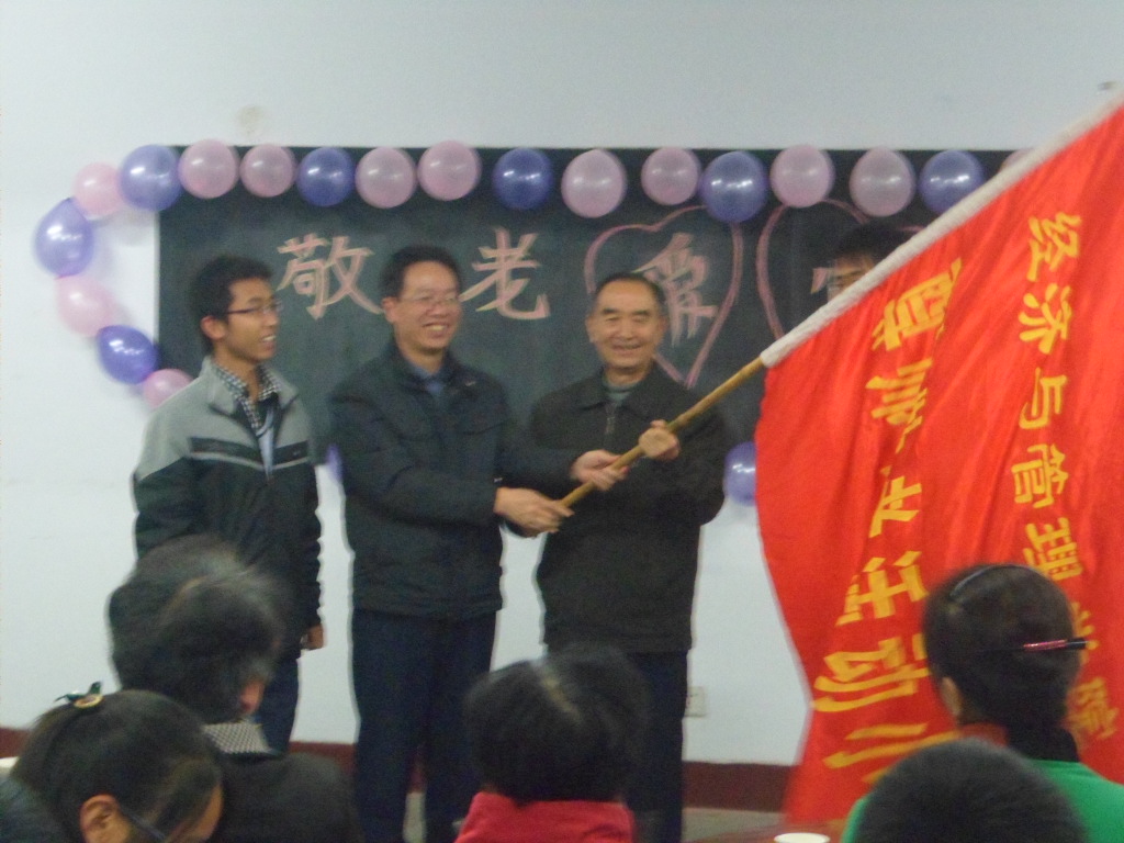 仪式上,王瑞伍老师对商学院学生热情无私的帮助表示感谢。学院党委朱建带领大家回顾了学院11年尊师敬老的光荣历史。在交接仪式中,王瑞伍老师和朱建书记把旗帜郑重地交付到了学生代表手中。学生们坚定表示他们会将尊师敬老活动继承发展地更好。仪式结束后同学们还表演了自行编排的文艺节目,整个活动室里充满了欢声笑语。