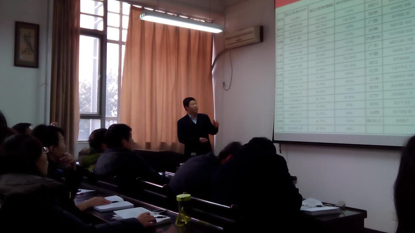 1月12日下午,应商学院邀请,中国社科院工业经济研究所所长、《中国工业经济》和《经济管理》主编、中国企业管理研究会副会长、博士生导师黄群慧教授在商学院二楼报告厅作了主题为“挑战与动力:新常态愿景下的经济发展”的学术报告。商学院骨干教师和研究生共100余人聆听了报告,报告由商学院院长任太增教授主持。