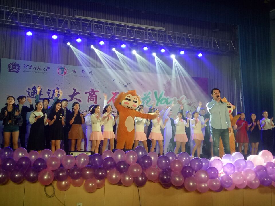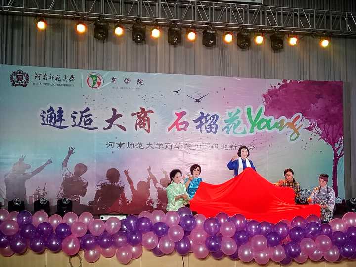 12月11日晚,商学院在河南师范大学附中礼堂,隆重举办“邂逅大商,石榴花young”2016级迎新晚会。校离退休职工管理处党总支书记郑其腾、离休科科长樊莉霞,商学院党委书记李杰,校党委办公室秘书科高彬,学生处学生管理科郭委,历史文化学院团委书记原方,环境学院2014级辅导员张笑乾,商学院党委副书记段红伟、教学秘书杨玉珍、科研秘书海本禄以及各年级专兼职辅导员莅临晚会现场,与五百多名学生一同观赏演出。