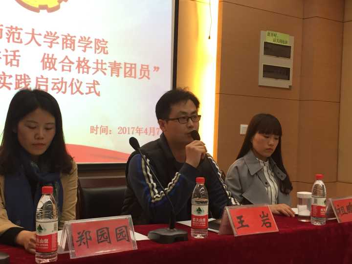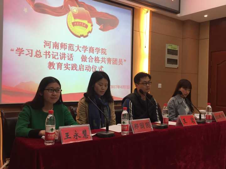 为贯彻落实习近平总书记“一学一做”思想,努力贯彻落实先进指导思想,深入推进共青团改革,大力推进从严治团,切实增强团员的先进性和光荣感,积极响应团中央号召,商学院于4月7日晚八时,在院办公楼119会议室举办了“一学一做”教育实践启动仪式。商学院团委书记兼2015 级辅导员王岩、2016级辅导员郑园园、2015级辅导员助理祖鹏阳、2016级辅导员助理王永慧及2015、2016级优秀团员100余人参加了本次仪式,并认真学习“一学一做”思想。