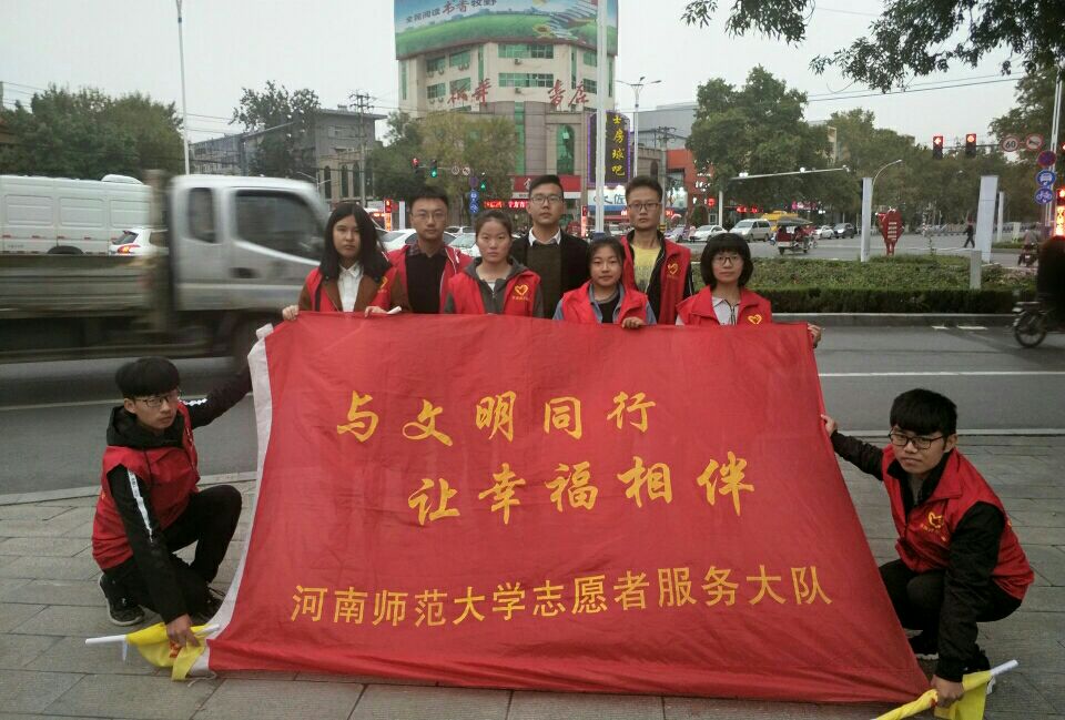 为进一步深化文明交通行动,增强市民文明交通意识,创建文明新乡,受河南师范大学校文明办的号召,10月11日上午七点,商学院2016级兼职辅导员高岩锋带领院文明交通志愿者服务队一行8人,在宏力大道与胜利路交叉路口开展文明交通志愿劝导活动。