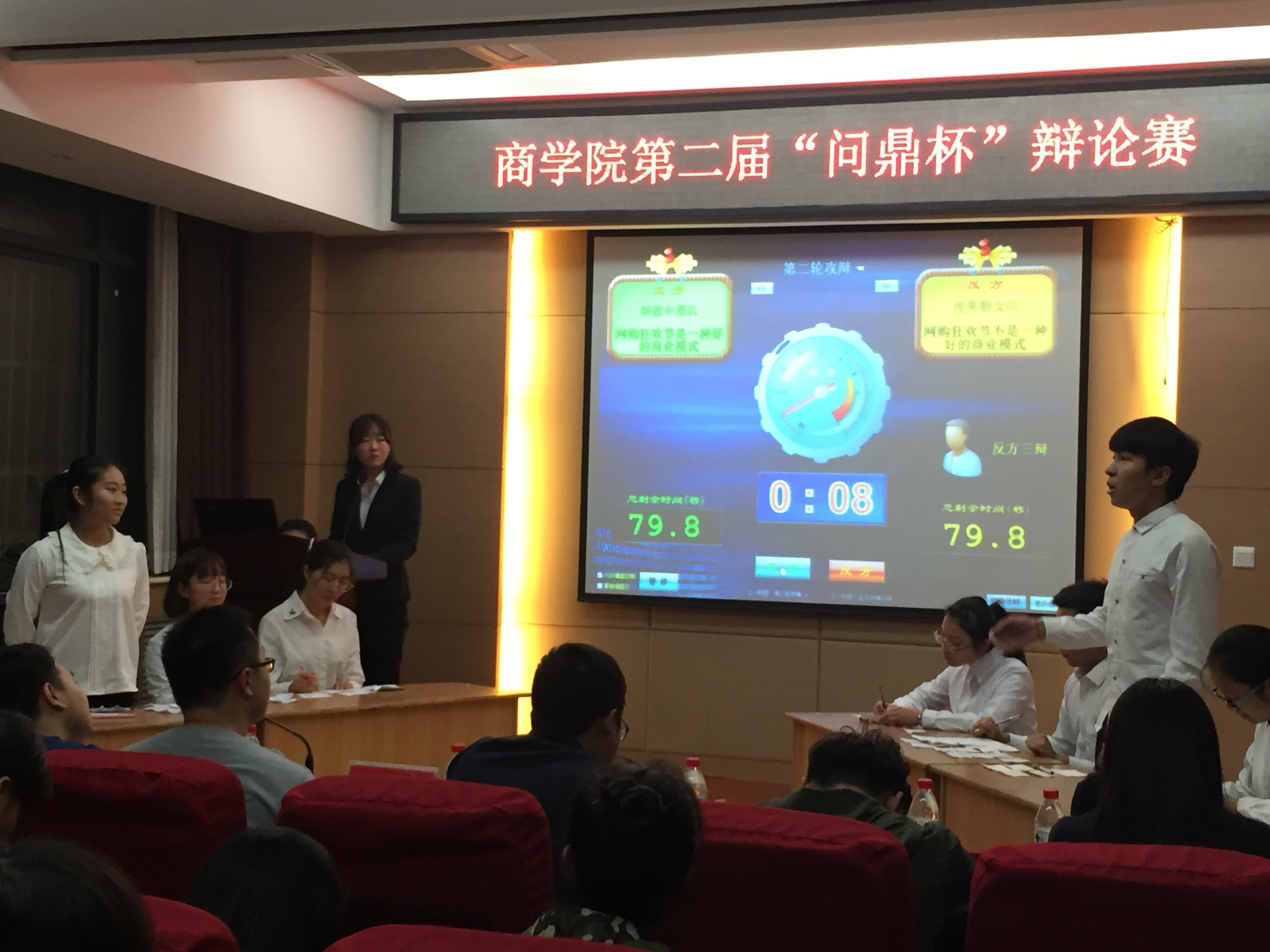 10月15日19时,商学院第二届“问鼎杯”辩论赛在商学院119会议室如期举行,此次辩论赛邀请到骨干教师和往届优秀辩手担任评委。由正方辩手组成的辩破中原队和反方辩手组成的俊男靓女队就辩题“网购狂欢节是不是一种好的商业模式”展开激烈的争辩。16级17级的部分同学观看了此次比赛。