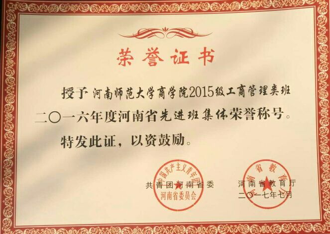 为表彰我省2016―2017年度优秀学子及优秀班级,鼓励同学们秉承优良传统、优秀学风不断进取,经过长期评选,河南省普通高等教育三好学生、优秀学生干部和先进班集体的评选结果正式公示。我院七名优秀学子荣获省级三好学生,三名学子荣获优秀学生干部,2014级、2015级工商管理类专业班荣获省级先进班集体荣誉称号,特向全院师生报喜。