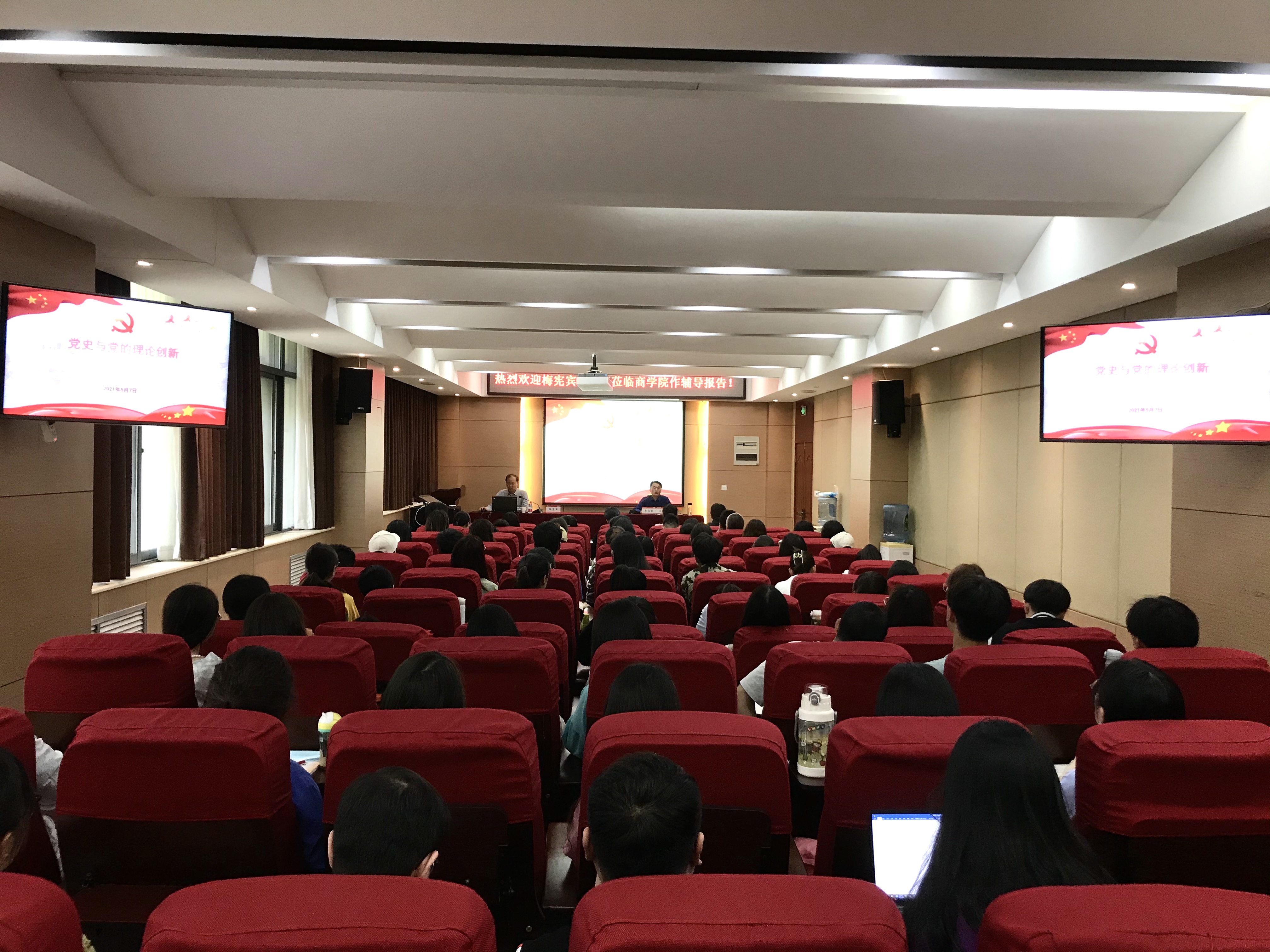 为深入贯彻落实习近平总书记关于党史学习教育的重要讲话精神,推动学院党史学习教育深入开展,5月7日,校党委副书记、工会主席梅宪宾以《党史与党的理论创新》为题,为商学院师生作党史学习教育专题辅导报告。学院领导班子、全体党支部书记及师生党员代表90余人参加了报告会。报告会由学院党委书记李志前主持。