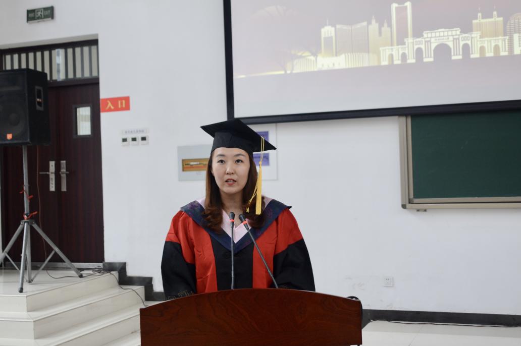学院师生、校友代表依次发言。研究生毕业生代表杨君笑、本科生毕业生代表李想分享了对恩师的感谢、收获的喜悦、离别的不舍和对未来的憧憬,表示定不会辜负学院的培养、恩师的教诲,争做社会栋梁。教师代表何爱琴则回顾与学生的点点滴滴,表达对学生的不舍之情,希望学生坚定理想信念,爱读书善读书,发扬肯吃苦不怕苦的奋斗精神,多与老师、同学保持沟通交流。普华集团董事长刘道欣作为杰出校友代表发言,为毕业生们讲述自己的职场经验和创业经历,希望商学院毕业生牢记师大校训,不断完善个人的社会知识和综合素养,用专业知识、进取精神汇聚起强大动力源泉。