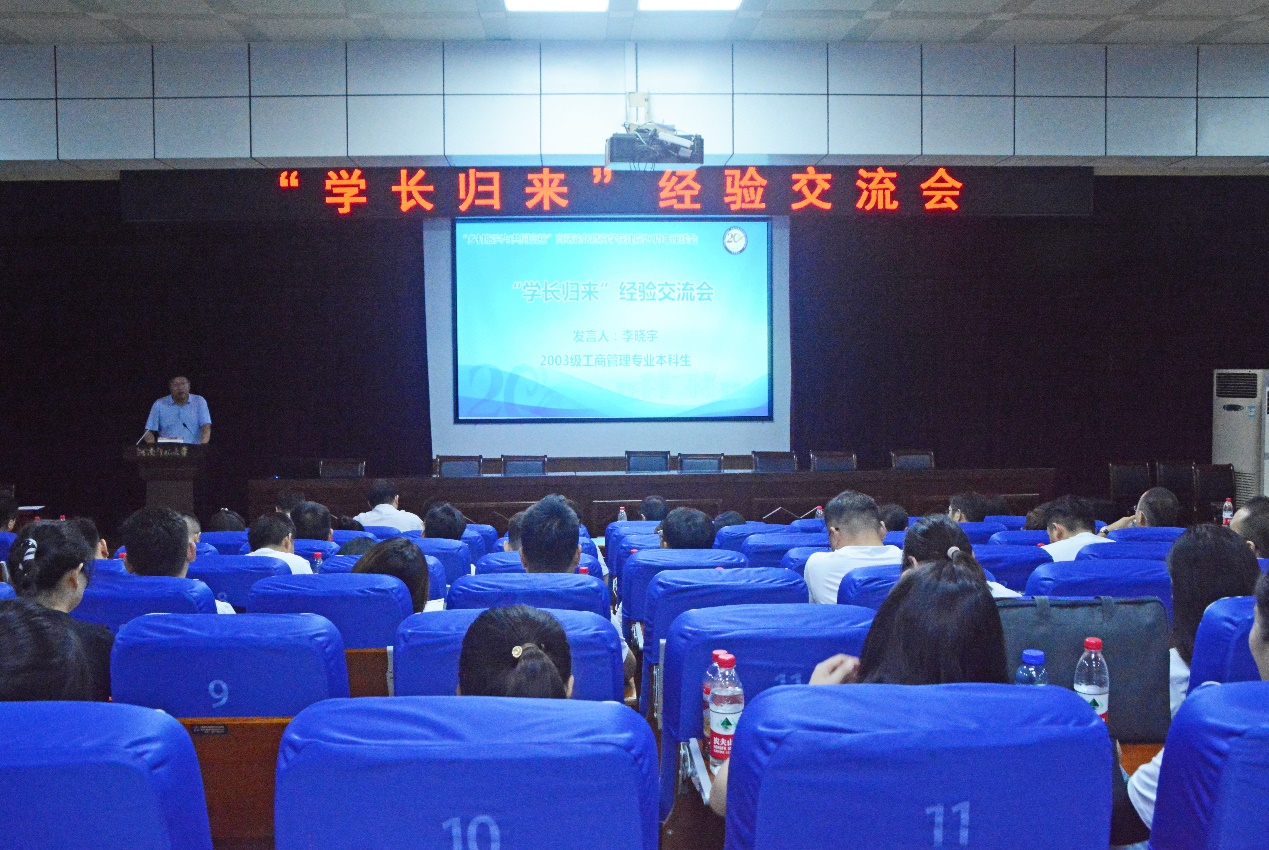 7月11日上午,商学院20周年院庆校友活动“学长归来”经验交流会在党校教室举行。商学院原党委书记朱建、李杰,原党委副书记谢华,原团委书记李浩、王令耀,学院班子成员,学院历任辅导员代表出席交流会。100余名校友代表与学院师生代表500余人欢聚一堂,畅怀往思,共展新愿。交流会由商学院党委书记李志前主持。