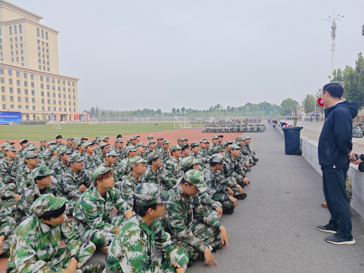 训练场上,同学们精神抖擞,口号响彻云霄,展现出当代大学生蓬勃的朝气和昂扬的斗志。