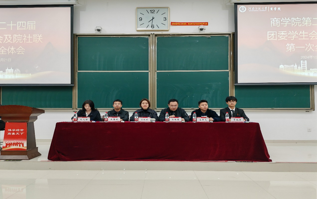 为促进各部口紧密交流,推动新学期各项学生工作有序开展,10月21日晚,商学院于文昌楼302教室举行第二十四届团委、学生会及院社联第一次例会。商学院党委副书记马淑明、团委副书记郭琛昊、2023级本科生辅导员朱春晓、2024级本科生辅导员孟孝文以及全体学生干部参加此次例会。