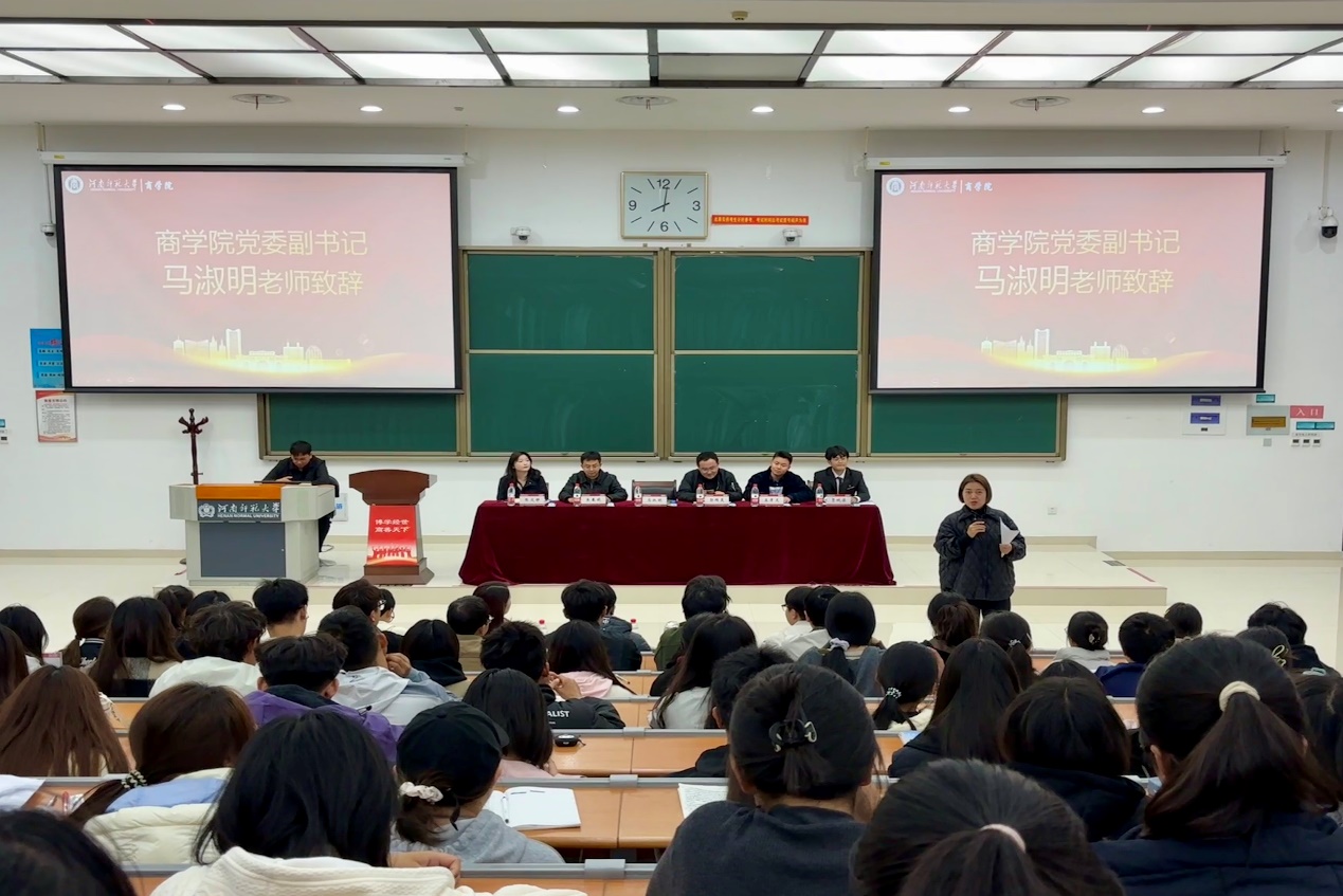 会议伊始,郭琛昊宣读各部口成员名单,对新干事的到来表示热烈的欢迎。团委副书记张文静、学生会主席贾诚梁、院社联主席史玉贤以及2023级、2024级学生代表依次发言,他们从自身工作经历出发分享经验感悟,鼓励同学们以身作则,团结协作,凝心聚力共同建设和谐的商学院。随后,马淑明详细介绍学院学生工作的优良传统与所获荣誉,并对工作成就给予高度的肯定。同时,她围绕“扛上一面旗帜”“挑起一份担子”“走上一条路子”三方面指出学生干部的职责在于将自我价值同集体利益相融合、一脉相承商学院“家”文化优良传统,并鼓励学生干部谨遵“三无三高”目标,用自己的努力创造出别人不可复制的经历。她期待学生干部找准定位,聆听和代言群体声音;勇担重任,主动承担起身份赋予的使命;笃行不辍,于实干中创造价值与成就自我。
