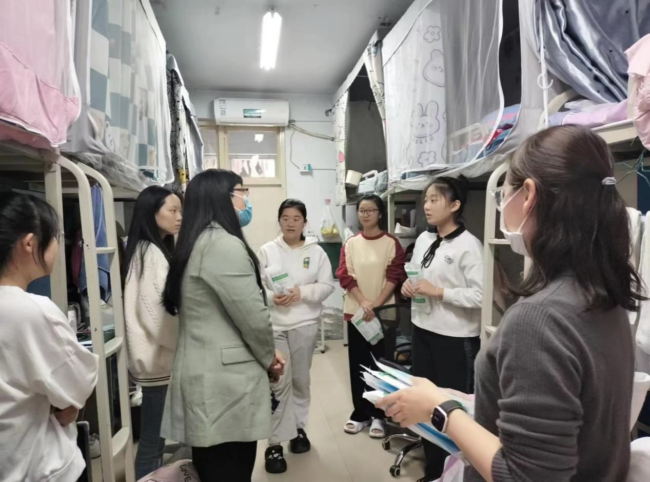 走访过程中,领导老师为每位学生发放了口罩、酒精消毒液等防疫物资,并询问关心学生近况。院党委书记马福运认真了解同学们的实际诉求,叮嘱同学们当前新乡市疫情形势依然严峻,做好疫情防控工作是重中之重,希望同学们理解并自觉遵守学校疫情防控管理规定,保持健康的心态,树立大局意识和全局意识,争做有担当、有作为的时代新人。院长蒋占峰关切地询问了同学们的思想动态,为大家强调了当前的疫情防控形势,对同学们的一些问题进行了答疑解惑,同时督促同学们在党的二十大胜利召开之际,对党的二十大报告中的新观点、新论断、新思想,要原原本本学、认认真真学。院党委副书记王秀杰传达了学校的疫情防控要求,叮嘱马院学子要提高站位,提高觉悟,自觉带头遵守,同时提醒同学们线上授课学习期间,要增强自主自律意识,提升听课质量。各年级辅导员,结合近期学生违反学校疫情防控规定的典型案例对同学们进行警示教育,提醒同学们要严格遵守防疫规定。领导老师们暖心的话语、亲切的慰问使同学们感受到了学院的温暖,大家纷纷表示会积极遵守学校疫情防控规定和各项规章制度,共同维护安全稳定的校园学习生活环境,并在今后的学习中,学以致用,做新时代的有为青年。