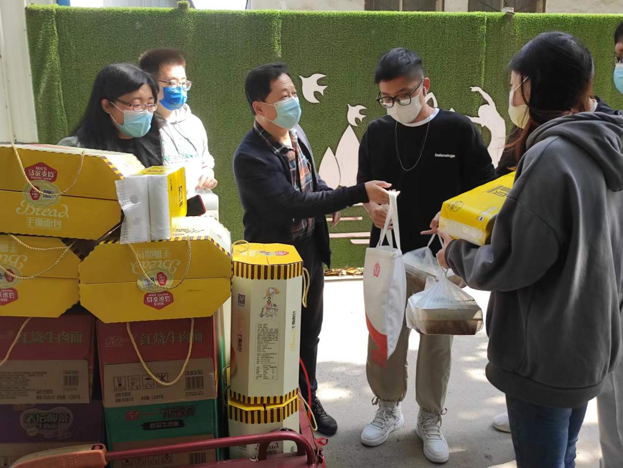 在疫情防控形势复杂的特殊时期,为深入了解学生的学习、生活情况,倾听学生诉求,疏导学生情绪,传达疫情防控要求,10月22日中午,马克思主义学院相关负责人及各年级辅导员共同走访慰问在师大附中居住的研究生及校内各年级本科生,为大家送去防疫物资和日常生活用品。
