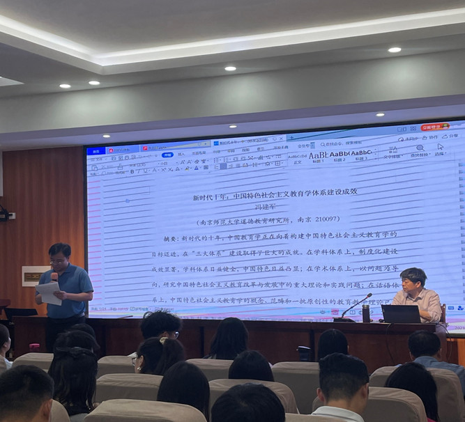 2023年6月12日下午,应河南师范大学教育学部邀请,学部86级杰出校友、南京师范大学冯建军教授,在田家炳教育书院819会议室作了“新时代十年:中国教育学的建设成效”专题讲座。本次讲座由教育学部副部长苗学杰主持,100余名学部师生参与学习。