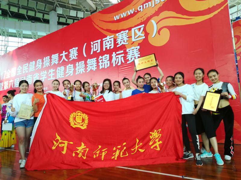 5月18日至5月20日, 2017年全国全民健身操舞大赛(河南赛区)暨第六届河南省学生健身操舞锦标赛在信阳师范学院综合训练馆顺利举行,本次大赛共计54支参赛队1074名参赛人员,我校代表队由岳晓燕老师任教练共计13名运动员参加了2个大项4个小项目比赛。经过激烈的角逐,我校代表队取得大学乙组街舞Street Jazz成套特等奖,大学乙组街舞Hiphop成套一等奖,大学乙组民族健身操舞成套一等奖;大学乙组踏板健身操舞成套一等奖的好成绩。