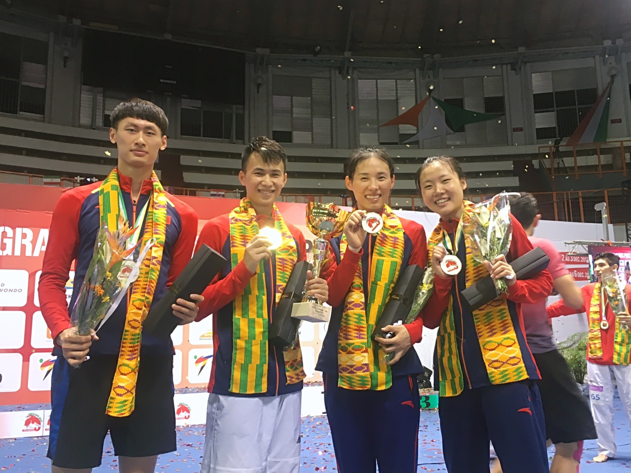 2017年跆拳道世界杯团体赛当地时间12月6日在科特迪瓦经济首都阿比让落下帷幕。我校体育学院2016级运动训练专业学生彭昭杰代表中国队参加比赛,最终力克强敌获得世界冠军。