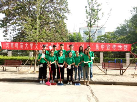 尽管天气炎热,但学员们的热情丝毫未受到影响,准时前往目的地开展工作。前往家属院的小组到达活动社区后,组员们首先将印有“河南师范大学文化志愿者进社区‘创文’集中宣传活动”字样的宣传条幅悬挂在社区的健身器材附近,接着为居民们发放文明手册并赠送印有“参与文明创建 让城市更美丽”的小礼品,呼吁居民们加入到“创文”建设中。在学员们的宣讲下,社区居民纷纷表示愿以创建文明城市为己任,共创美好家园。最后,学员们还进行了社区卫生清扫,与社区老人聊天等活动,得到了社区居民的赞许。